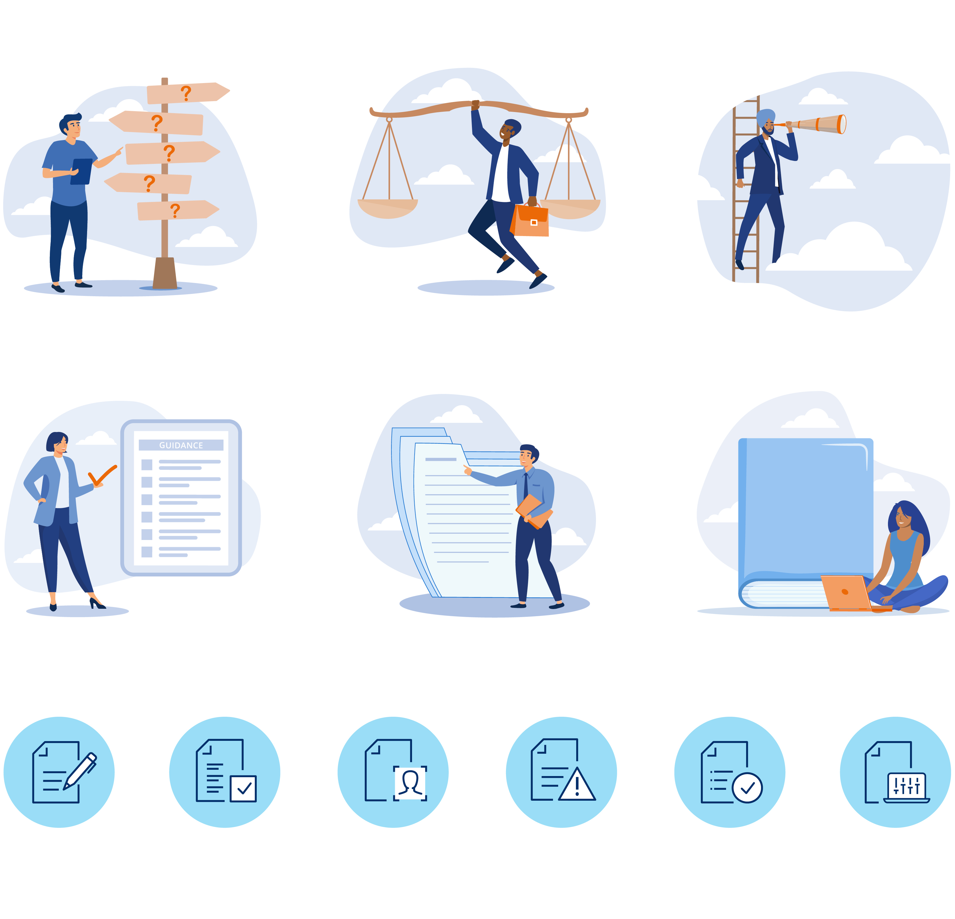 The guide combines illustration, iconography, and typography to create a look that is approachable yet rigorous and clear. The illustrations enhance the narrative and help avoid sector stereotypes.