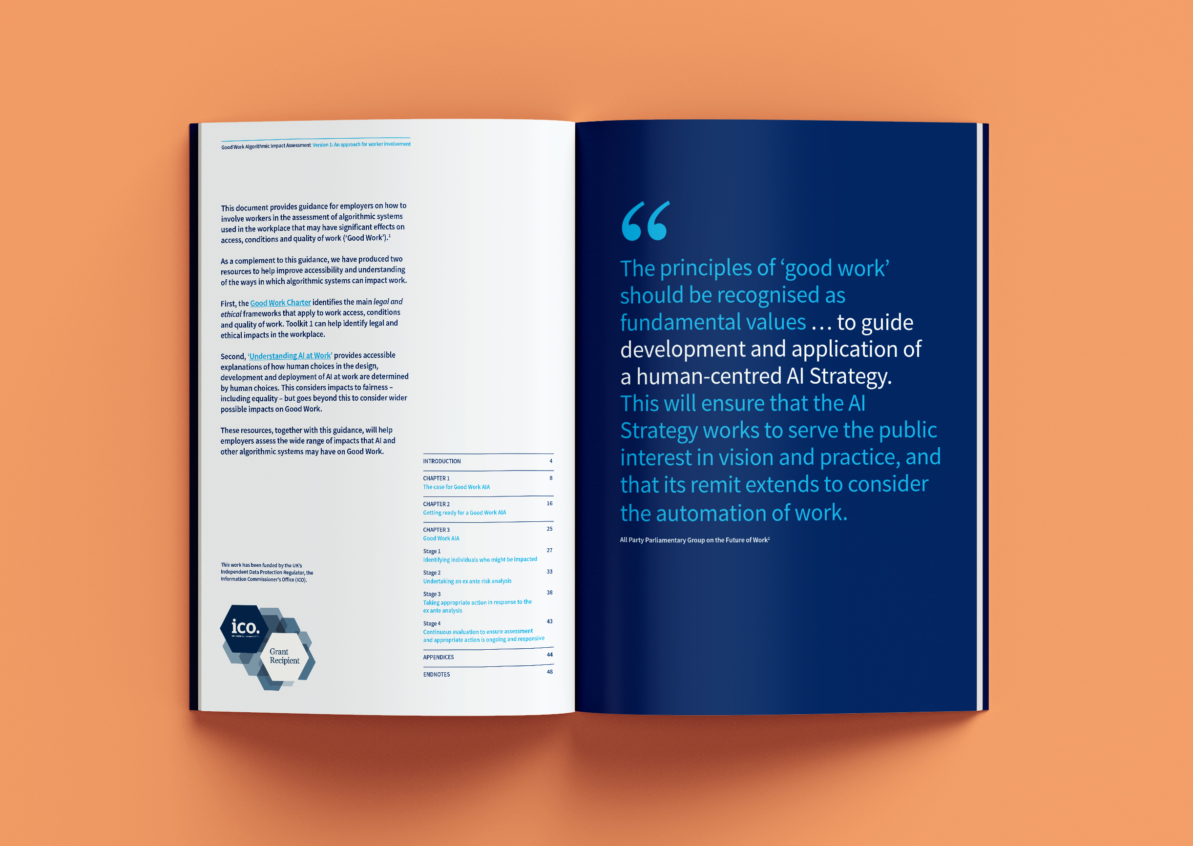 With support from the UK Information Commissioner’s Office Grants Programme, the Institute for the Future of Work is providing guidance designed to help employers and engineers to involve workers and their representatives in the design, development and deployment of algorithmic systems so that risks are anticipated and managed, ‘good work’ is promoted, the law is complied with, innovative approaches are unlocked and trust in technology is built.