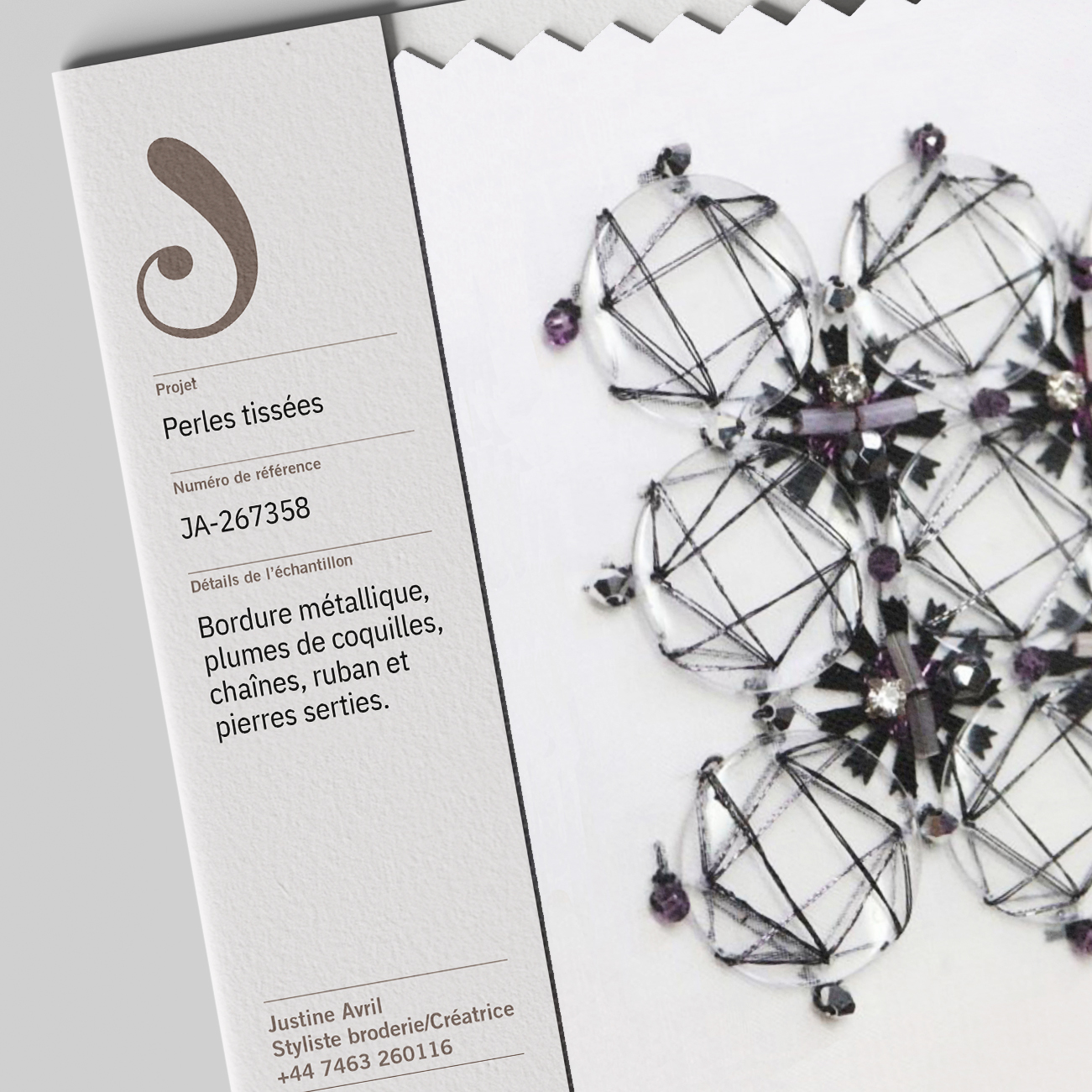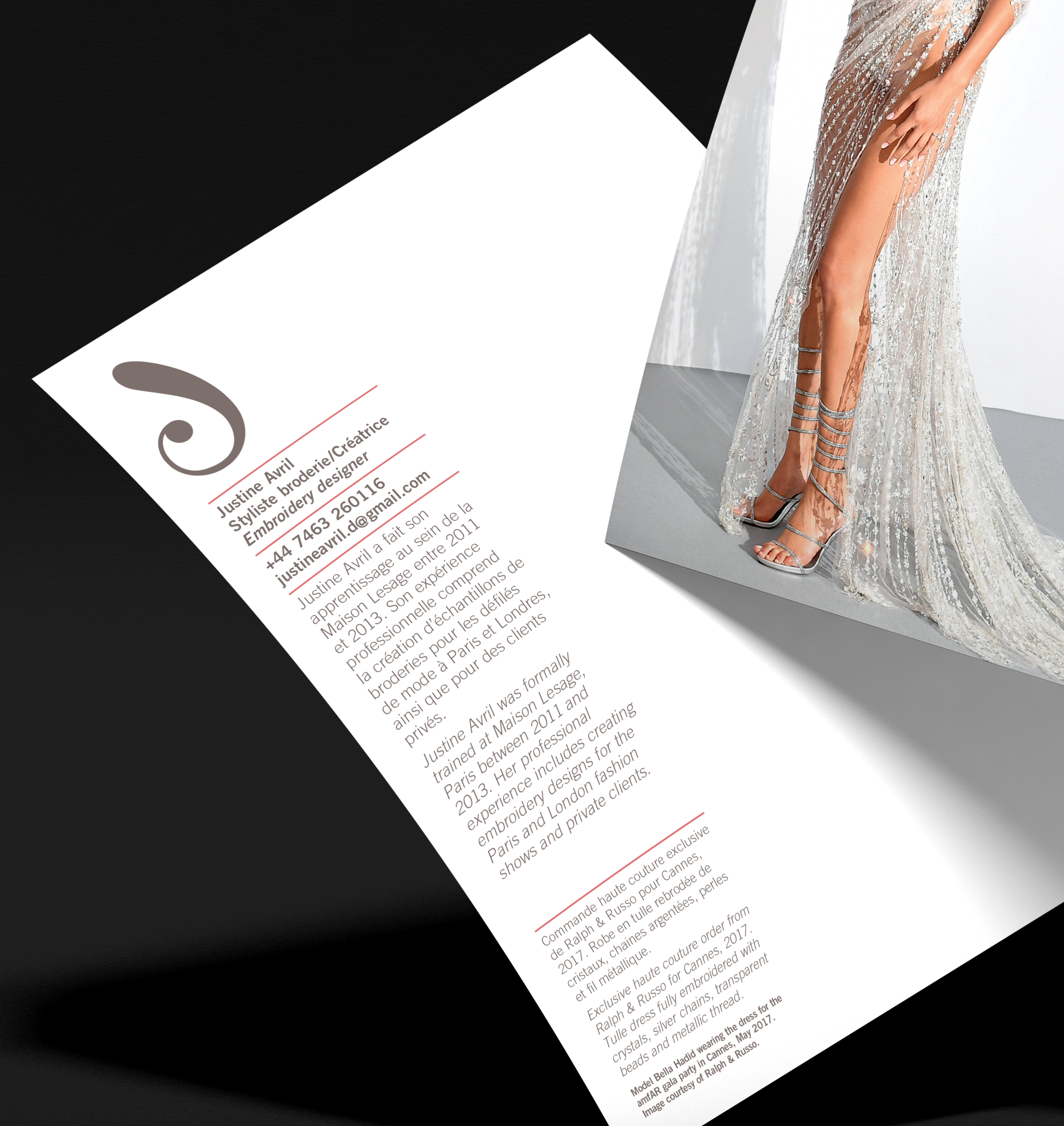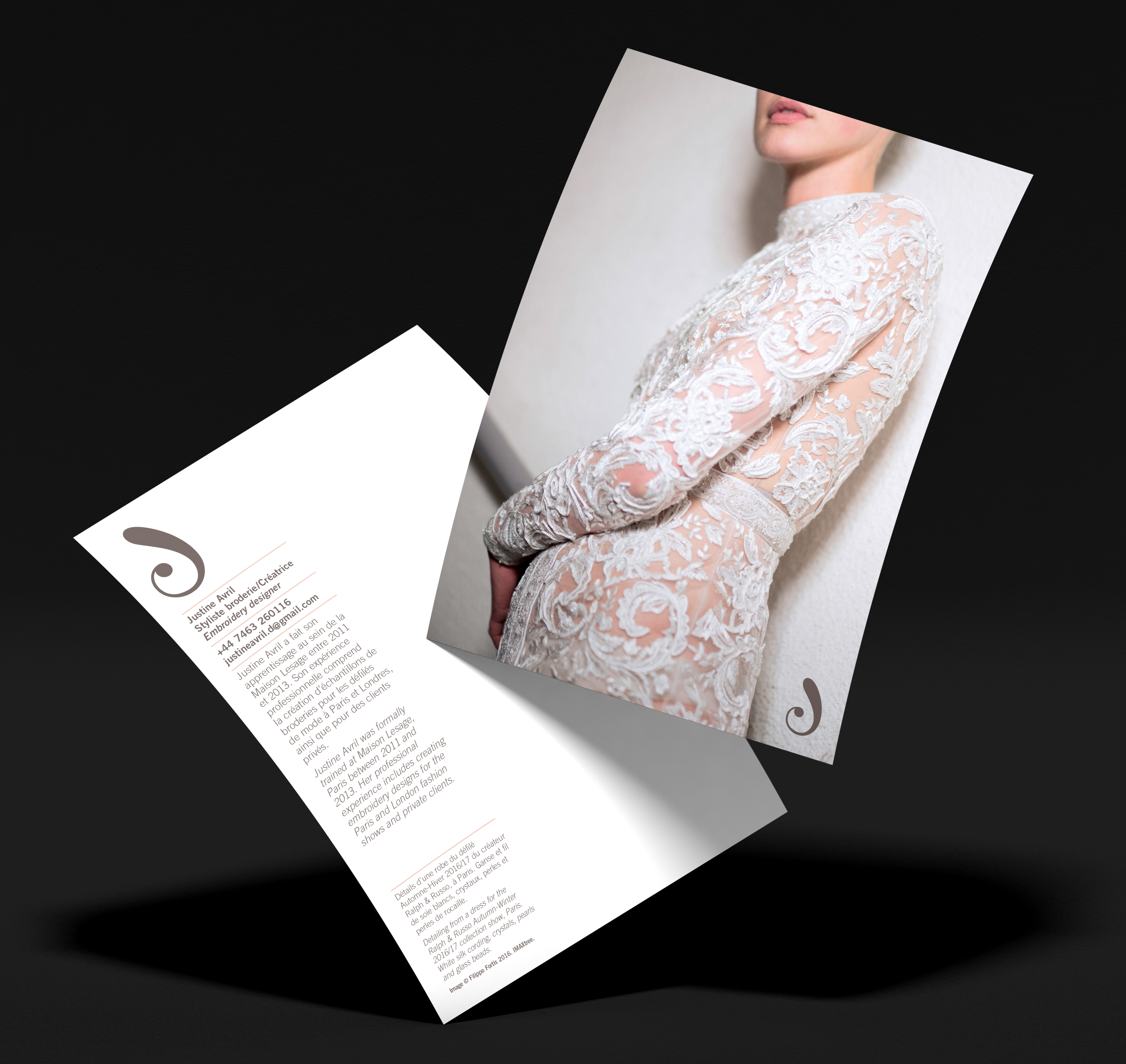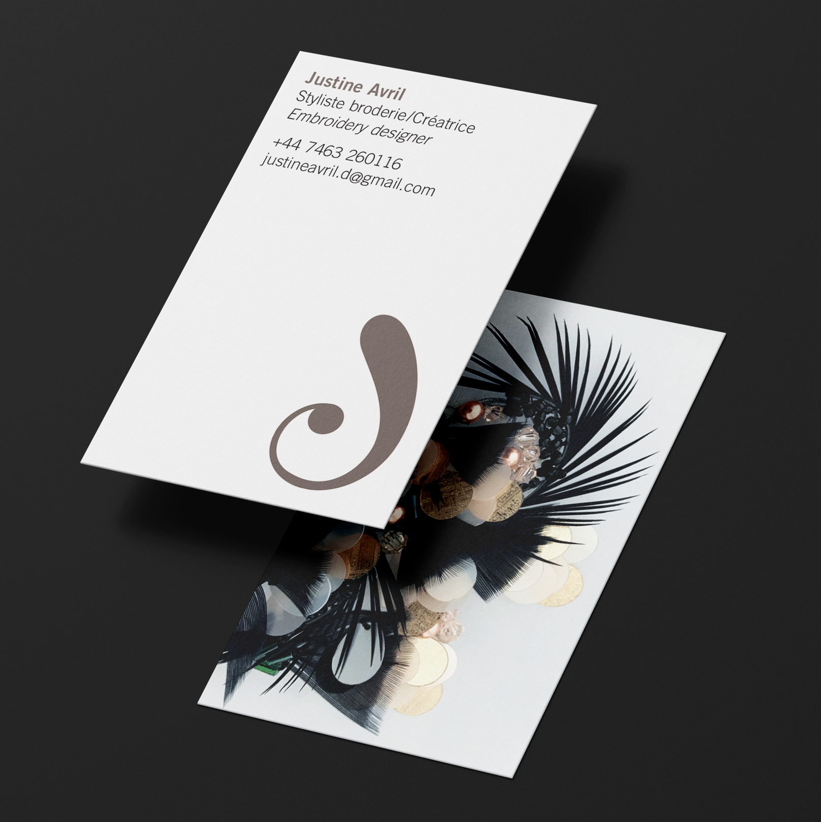 To help get Justine’s artistry in front of potential employers and clients, she needed a logo that reflects her profession and complements her work. The shapes found in her tools, in particular the tambour hook, and her embroidery were the inspiration for her letter ‘J’ logo.
