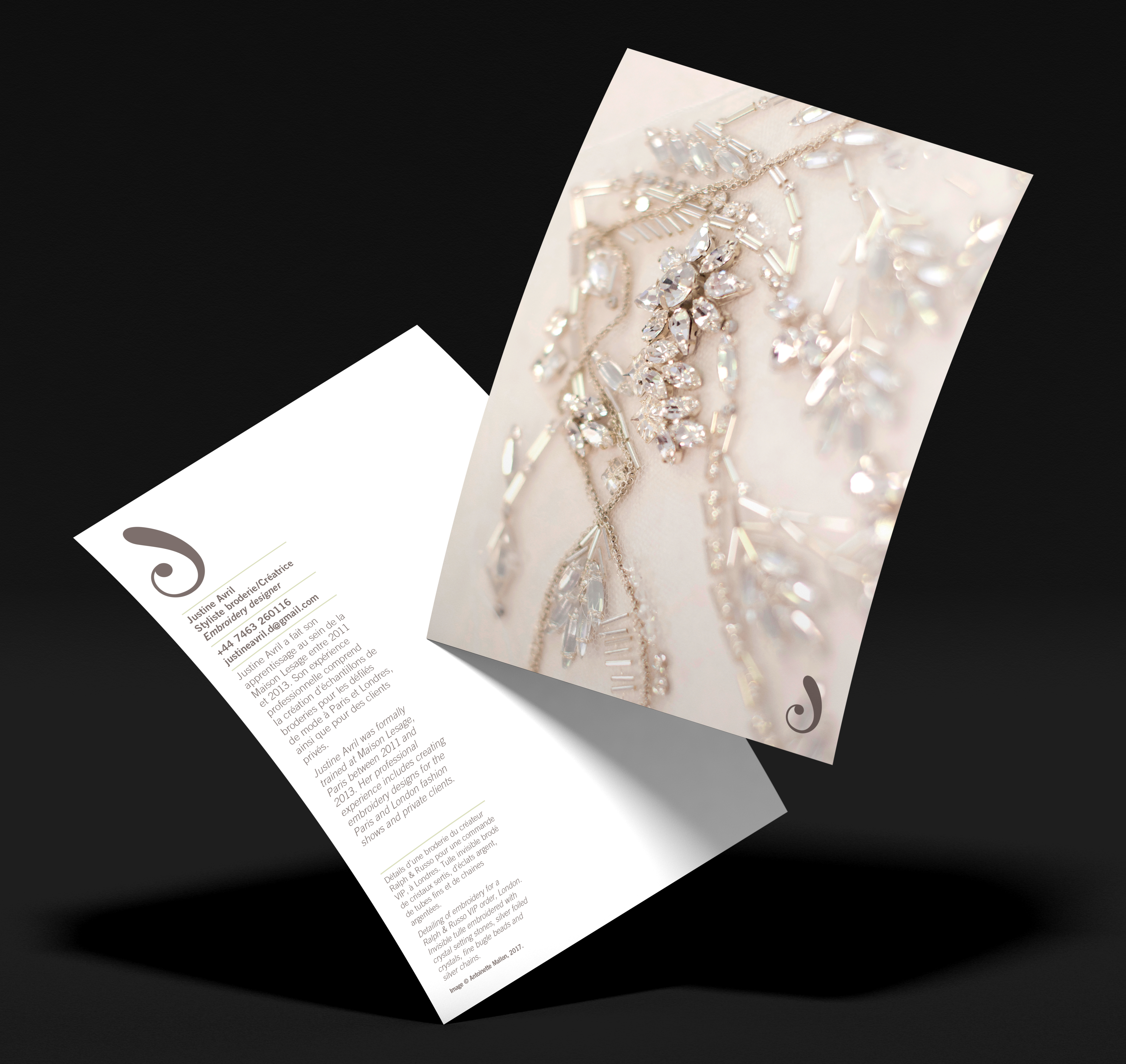 Justine was formally trained in Paris at the famous embroidery house Maison Lesage. The House has collaborated with the greatest names in the history of fashion, including Cristóbal Balenciaga, Christian Dior, Yves Saint Laurent and Hubert de Givenchy. Chanel counts Lesage as one of its Métiers d’Art ateliers. Her professional experience includes creating embroidery designs for the Paris and London fashion shows, and private clients.