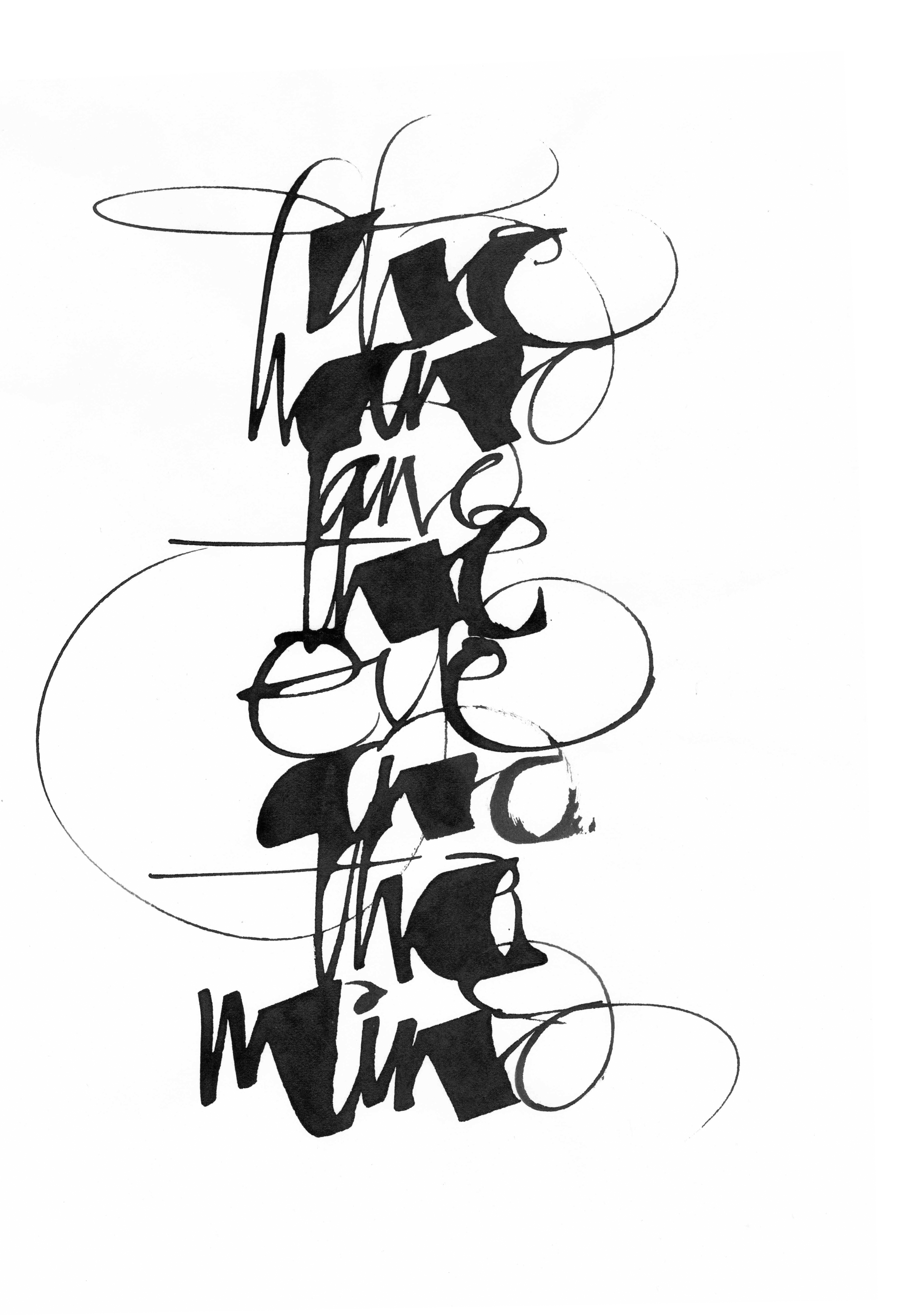 My interest in expressive calligraphy is primarily an attraction to the visual communication of gestural, handwritten marks. The spirit behind calligraphic marks is not to simply copy an existing letterform or typeface. It is about the meaning that can be expressed in writing beyond what is inherent in the words themselves. Using the power of gesture and line, calligraphy can convey something emotional as well as physical.