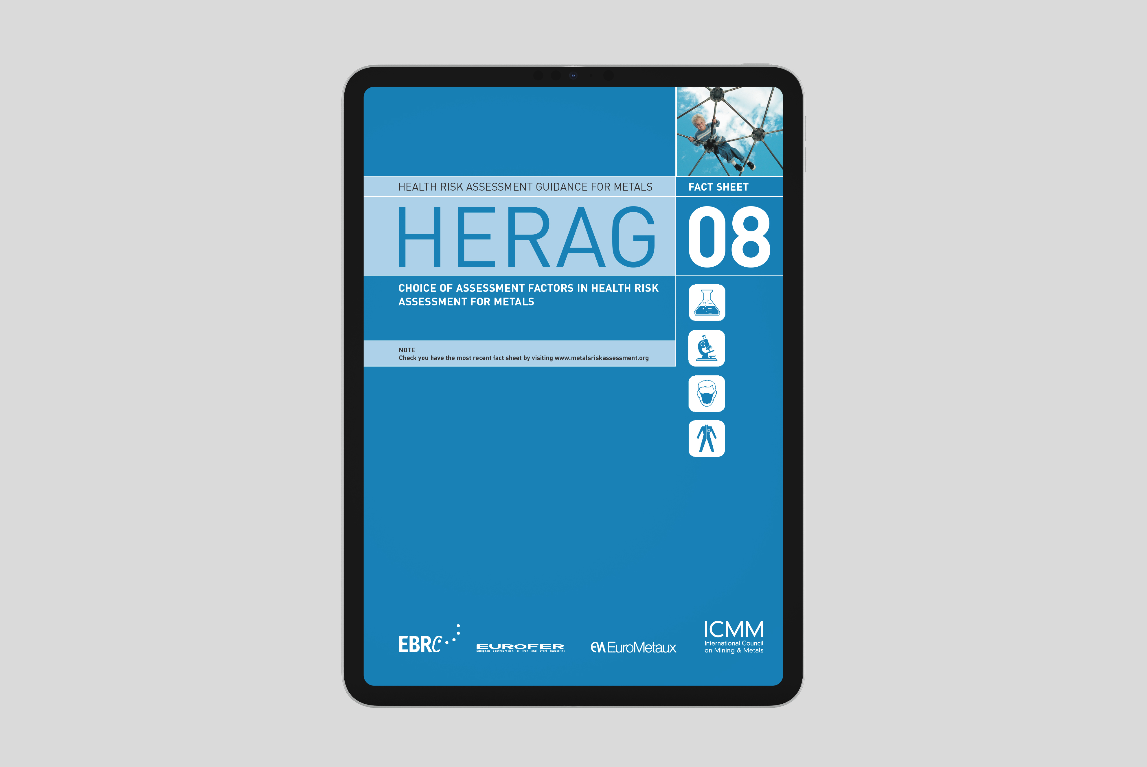 Cover design for a series of fact sheets providing detailed advice to perform accurate health risk assessments for metals (HERAG).