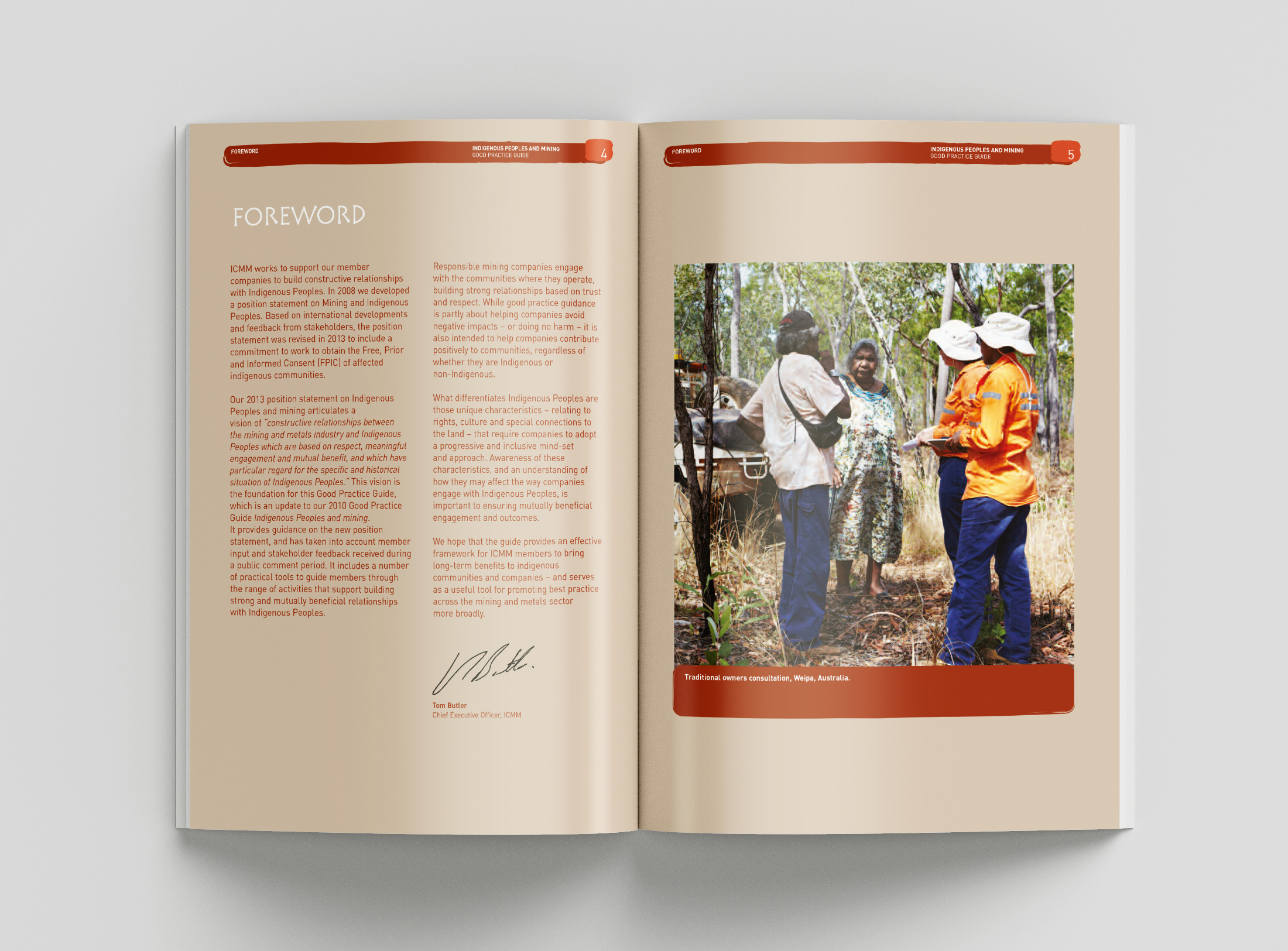Working with the ICMM communications team, projects included revising visual identity guidelines, a writing style guide, stationery items, the design of toolkits and guides, event materials, specialist country, climate change, health & safety, and sustainability reports. Selected items are made available in different languages.