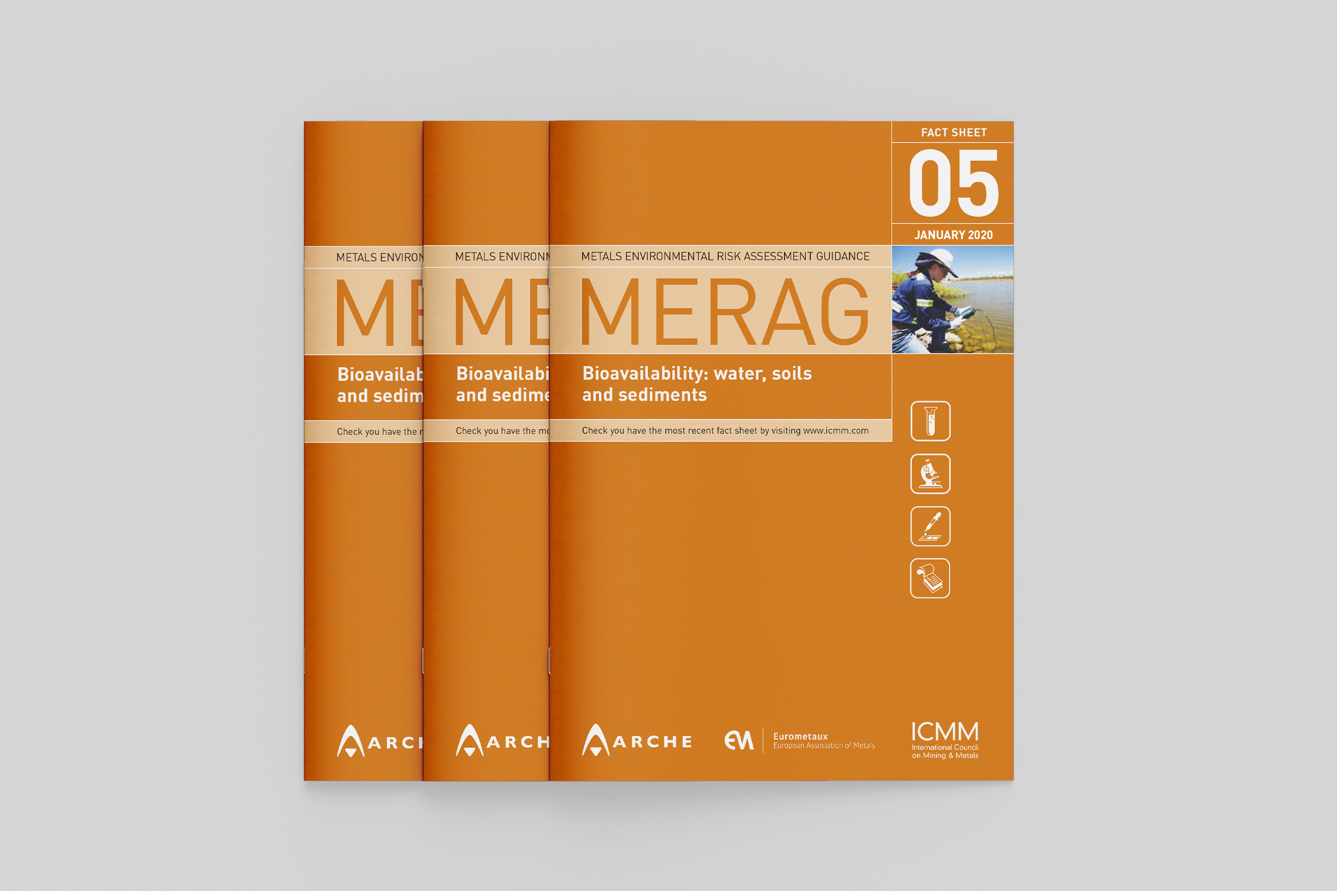 Cover design for a series of fact sheets providing detailed advice to perform accurate environmental risk assessments for metals (MERAG).