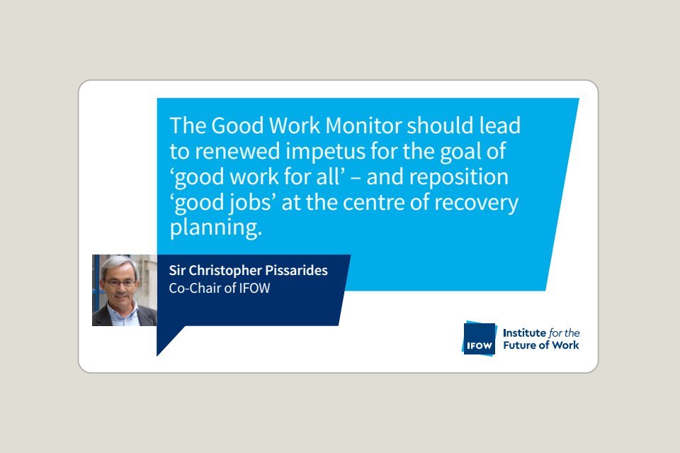 The technological revolution is changing how we work. Driven by platforms, data, and the pursuit of efficiency the human element of work is being eroded. The Institute for the Future of Work (IFOW) is an independent research and development institute exploring this change, reporting on it, and proposing practical solutions to promote people’s future wellbeing and prosperity.