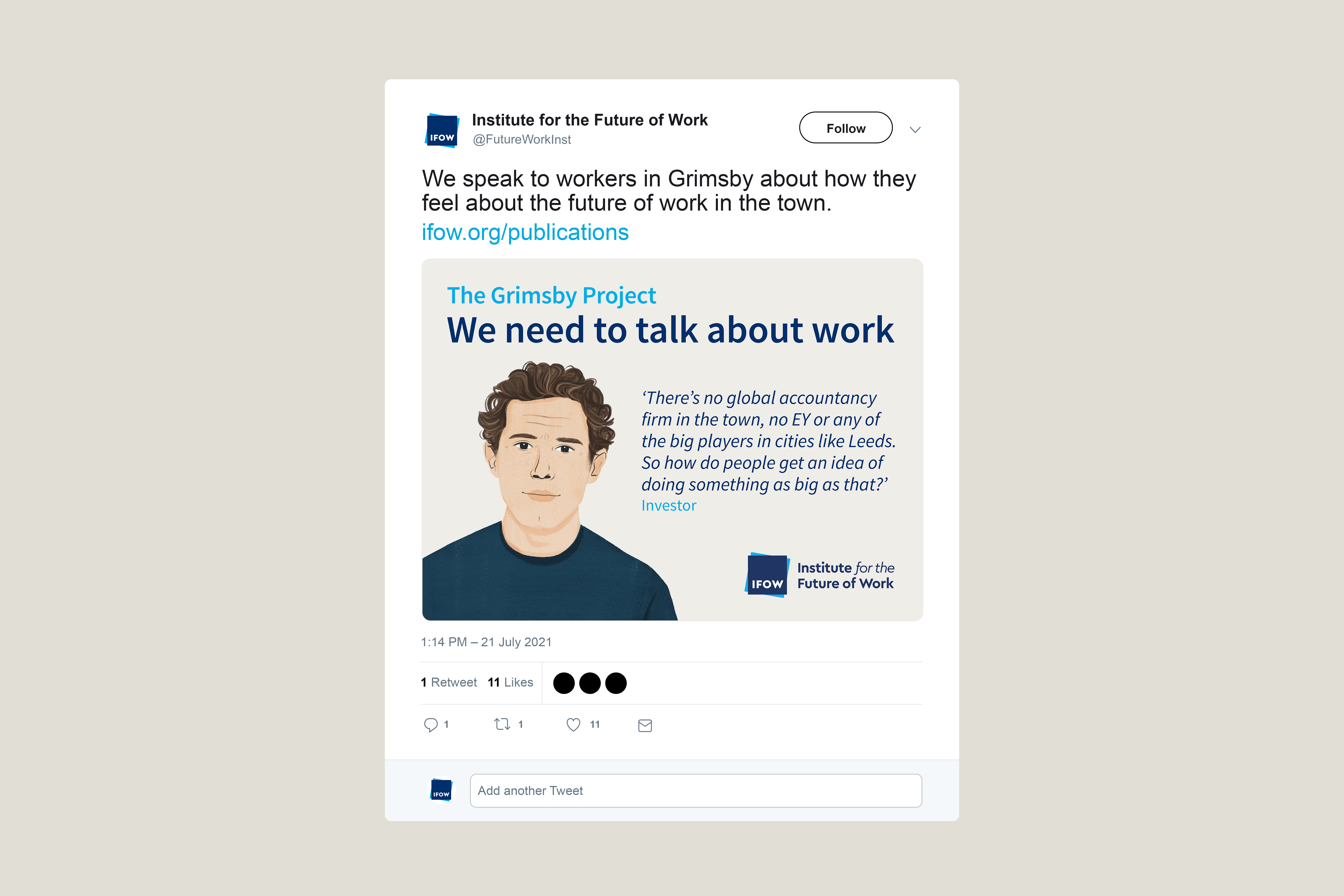 The Grimsby Project. One of several social media posts designed to announce the launch of the report. The illustration is by local artist Sonia Whitehead.
