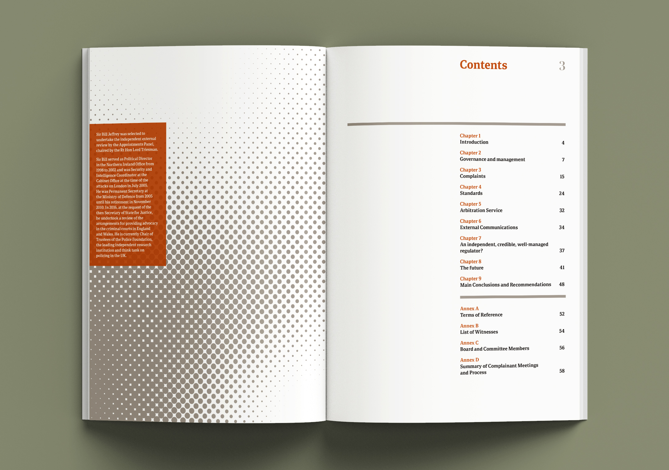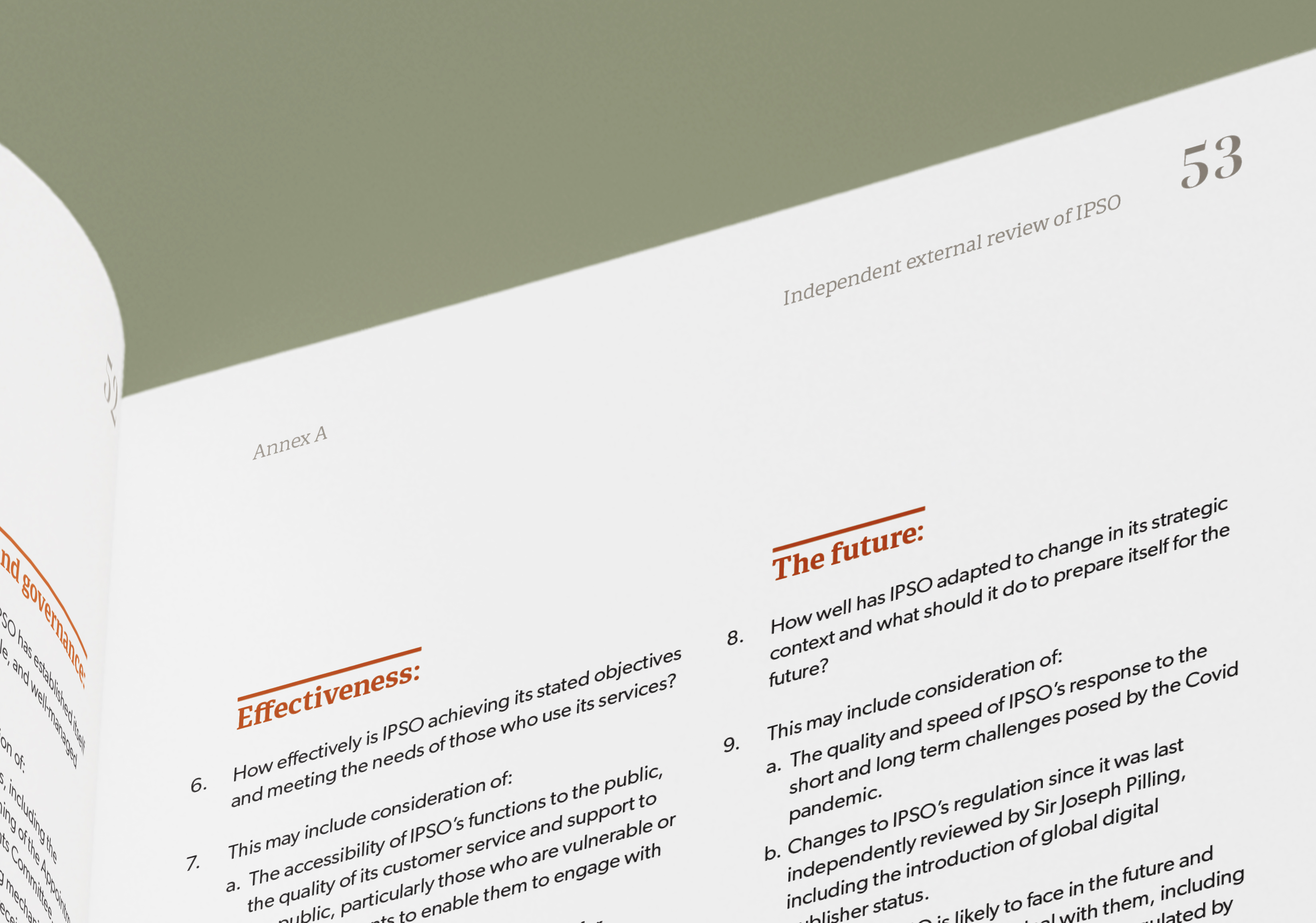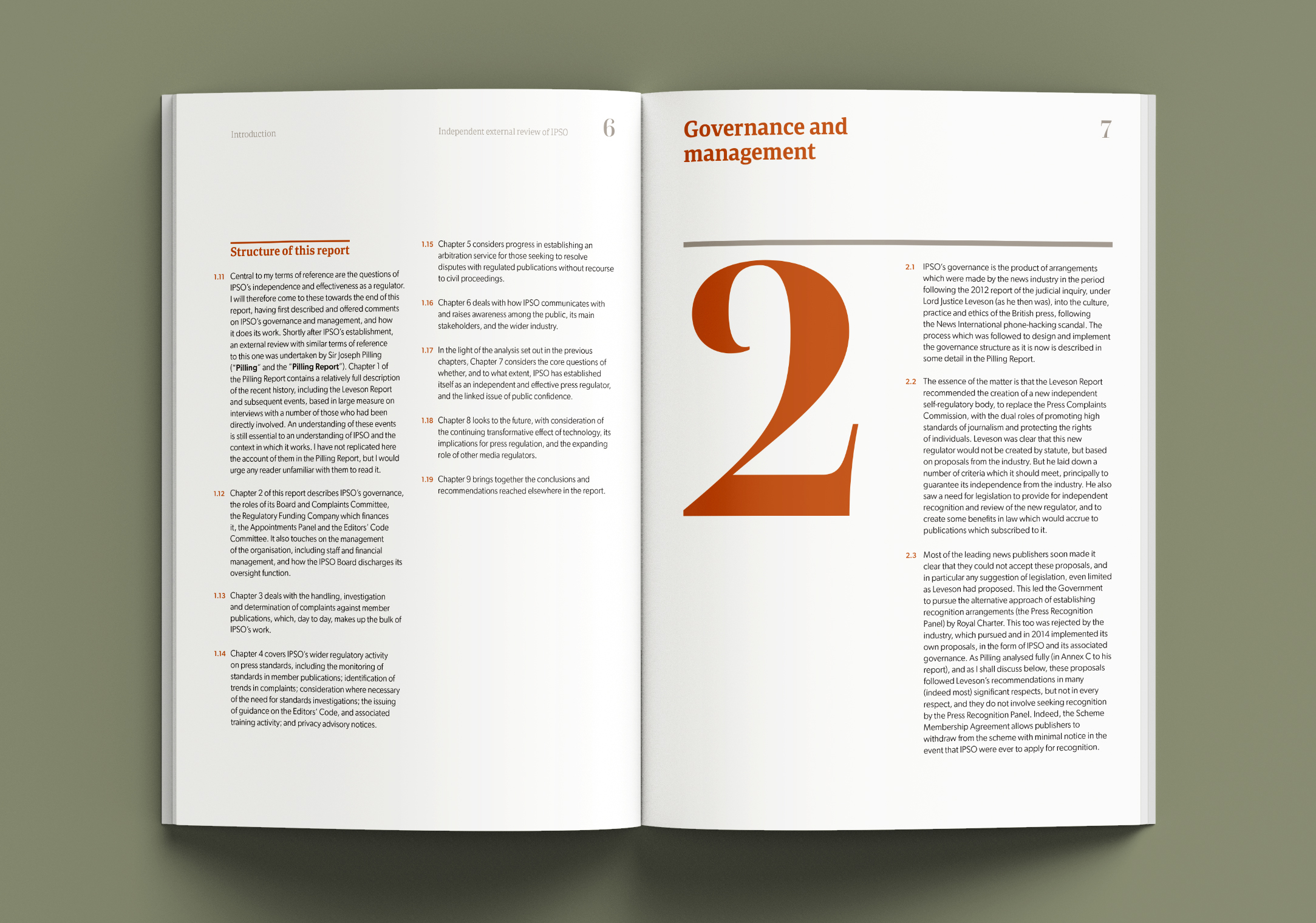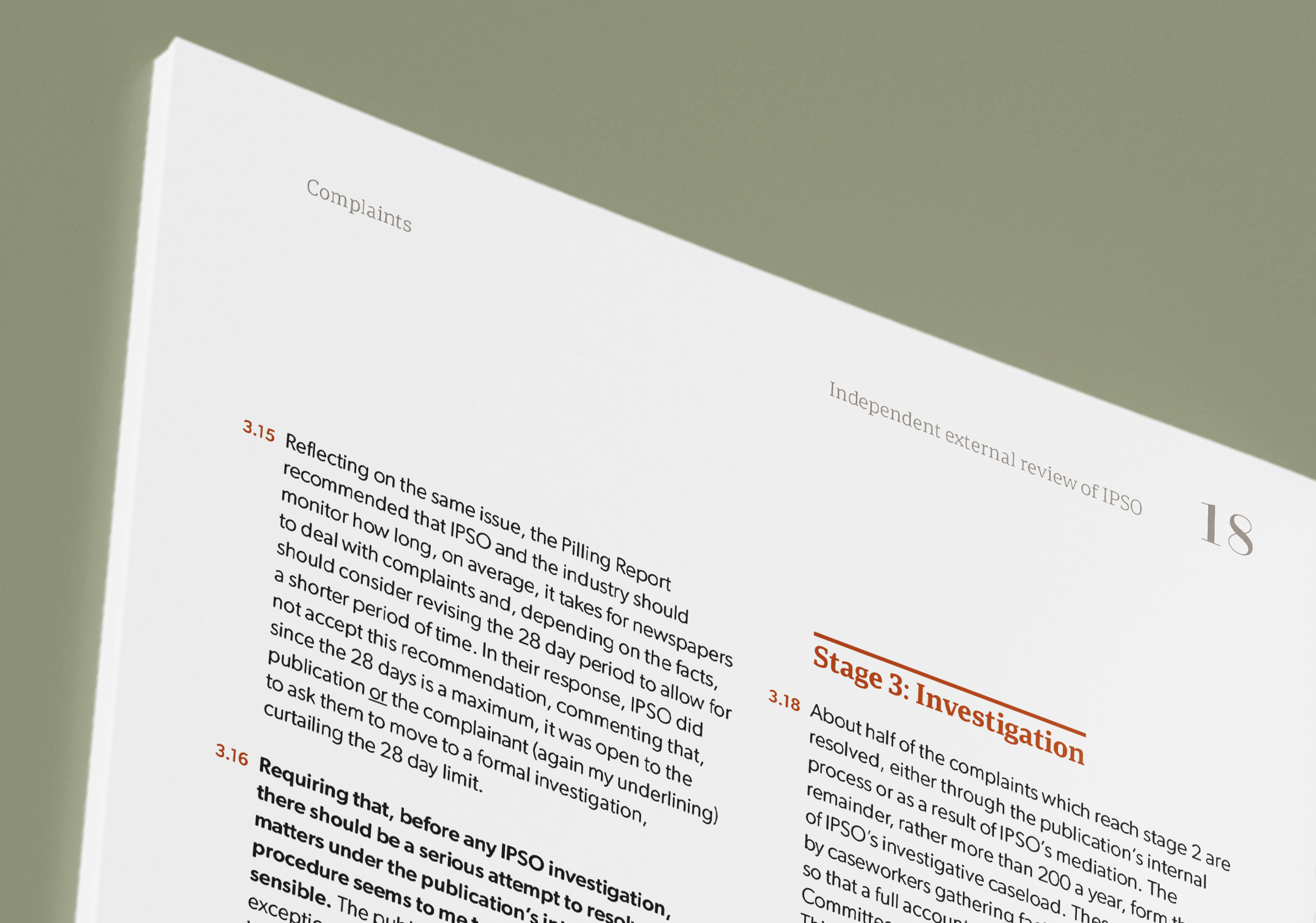 The design of the review incorporates elements from both print and online news and allows the findings to be accessed and referenced easily. The cover texture suggests the mixed provision of news in print (dots) and on screen (pixels). This has a made the work of IPSO more important as news providers search for up-to-date editorial guidance.